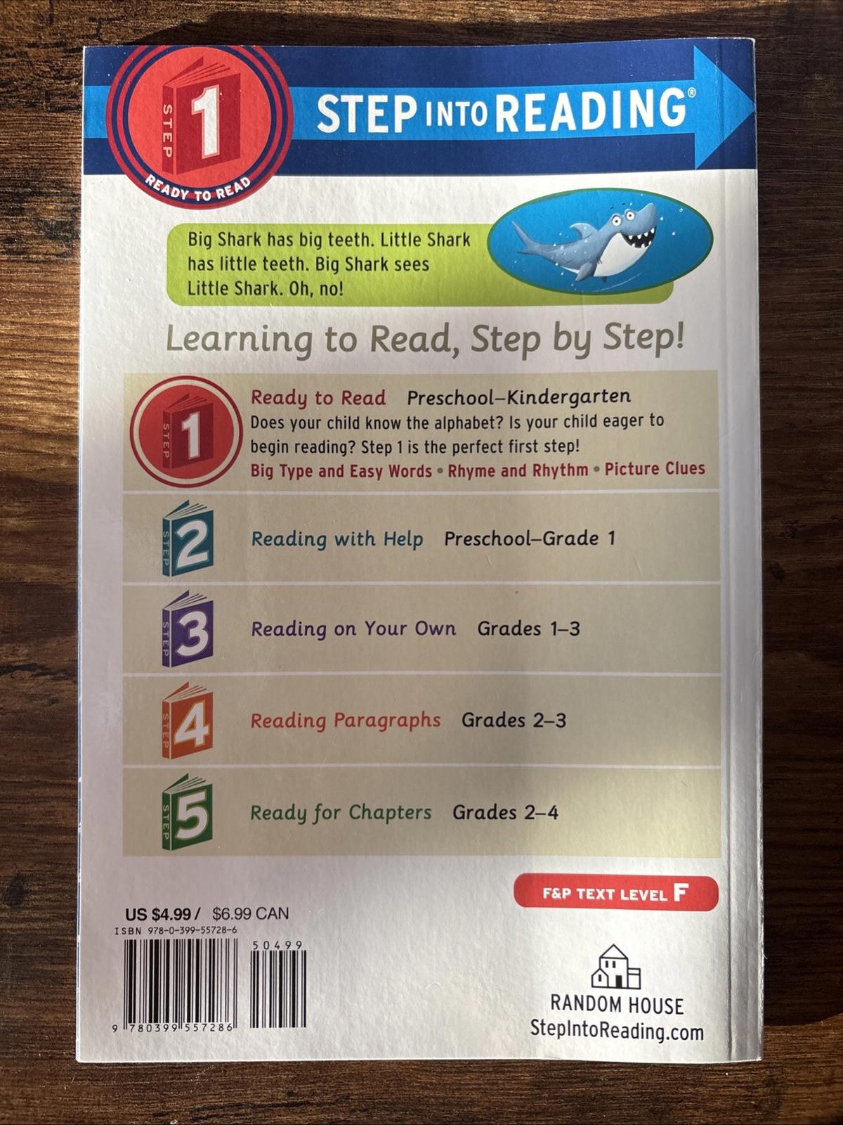 "Big Shark, Little Shark" by Anna Membrino is a trade paperback book published by Random House Children's Books in 2017. It is part of the Step Into Reading Series and is written in English. The book explores concepts of size and shape, as well as opposites, through the story of two sharks, one big and one small. With colorful illustrations by Budgen, Tim, and Yes, this juvenile fiction book is a fun and educational read for young readers. The 32-page book measures 8.9 inches in length, 6 inches in width, and 0.4 inches in height, weighing 2.9 ounces.