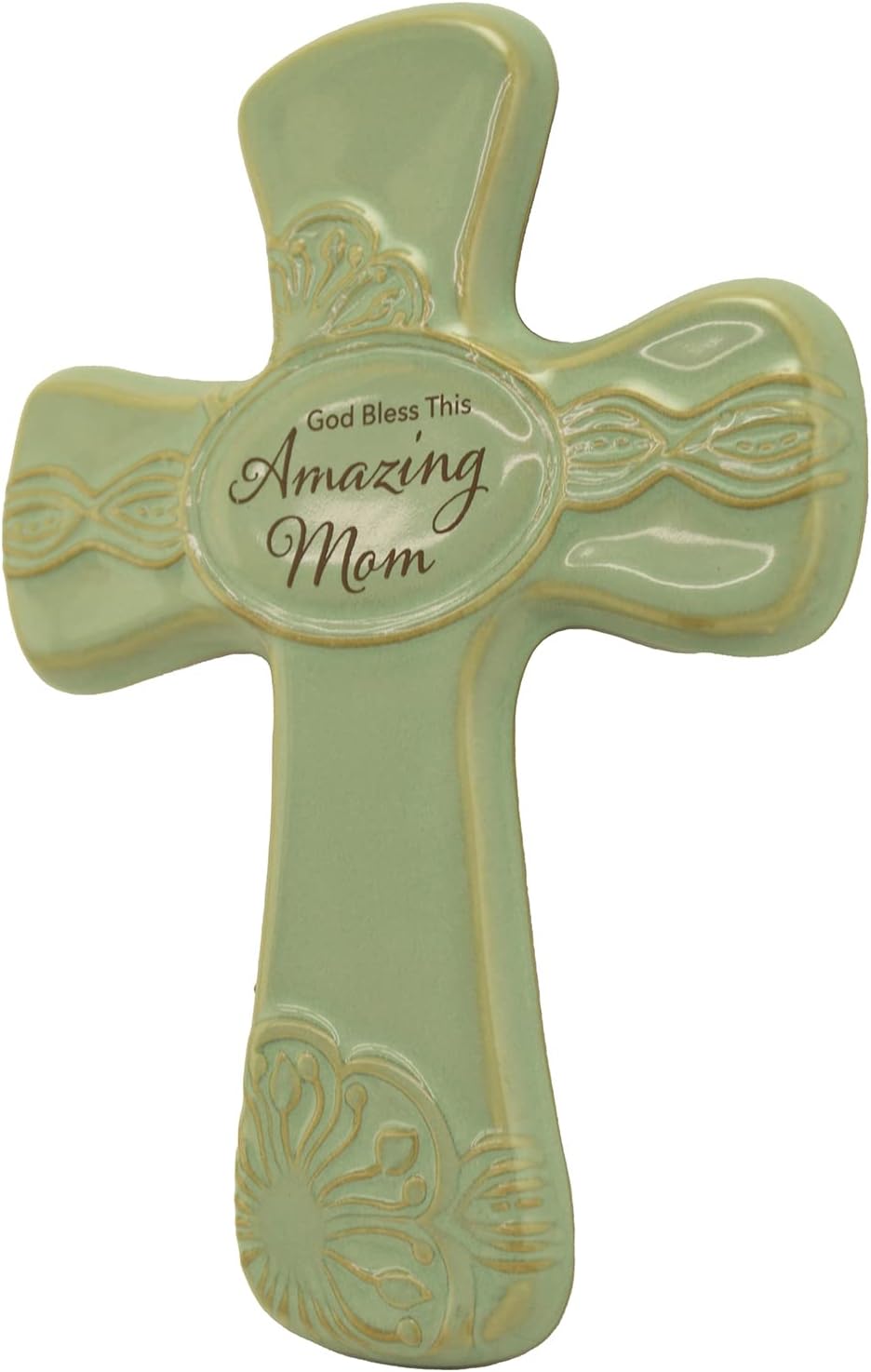 Abbey Gift Amazing Mom Pottery Wall Cross . Handcrafted stoneware featuring raised design, each with a finished back and hanger. Natural variations will occur. Comes gift boxed. Measures 6 inches x8 inches.